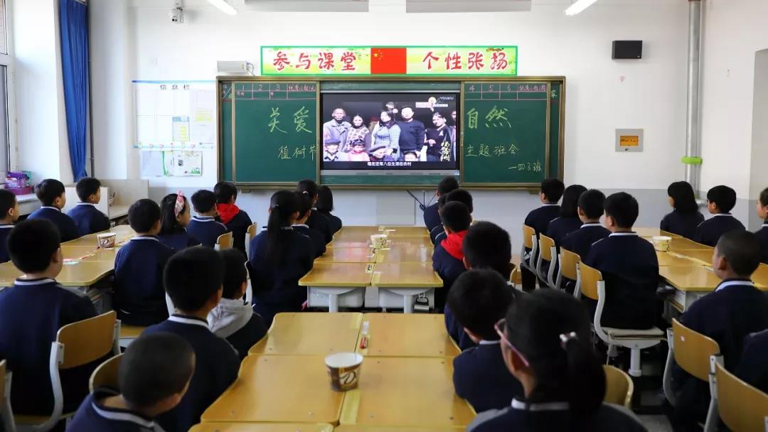 我校利用班会时间,班主任老师以植树节活动为契机,也再次向学生重申了节约资源、保护环境的重要性,并组织学生们观看微电影《杨善洲》,以感动中国人物的先进事迹,让孩子认识到关爱自然的深远意义。